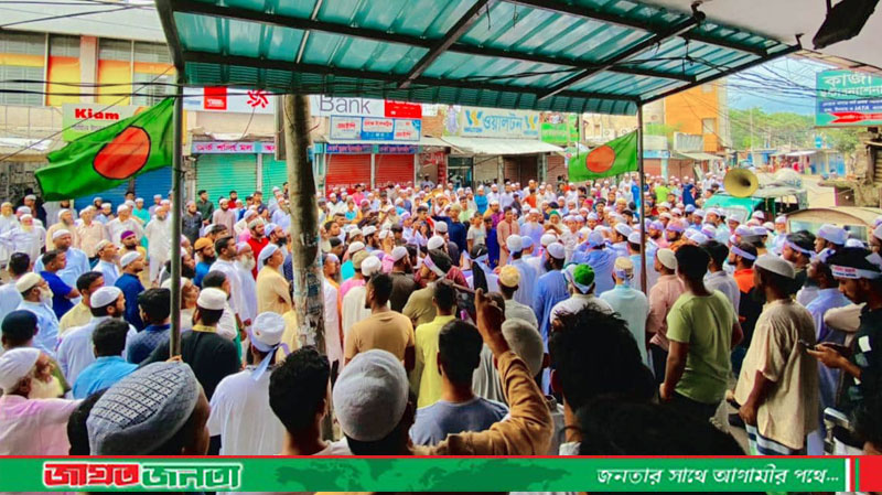 নবাবগঞ্জে ভন্ড নবী দাবীর অনুসারিদের অনুষ্ঠান বন্ধের দাবিতে মানববন্ধন