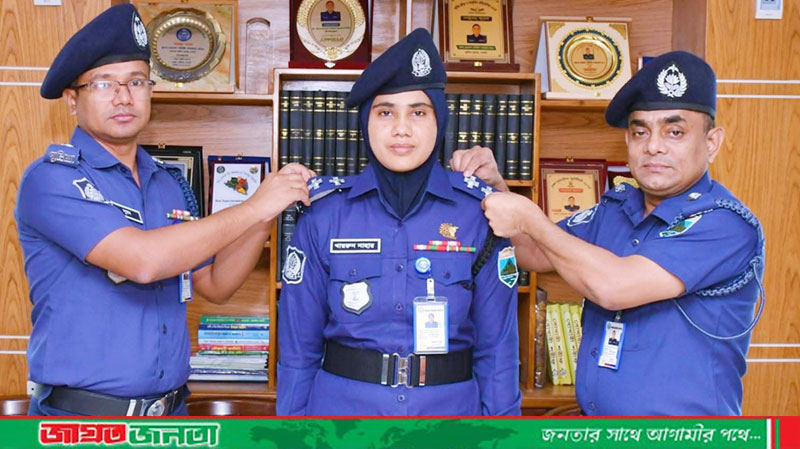 মঙ্গলবার (১৪ অক্টোবর) নওগাঁর পুলিশ সুপার মোহাম্মদ সাফিউল সারোয়ার বিপিএম তাঁর কার্যালয়ে এএসআই (নিরস্ত্র) হতে এসআই (নিরস্ত্র) পদে পদোন্নতি প্রাপ্ত অফিসার মোছা. খায়রুল নাহারকে এস আই পদের র্যাঙ্ক ব্যাজ পরিয়ে দেন।