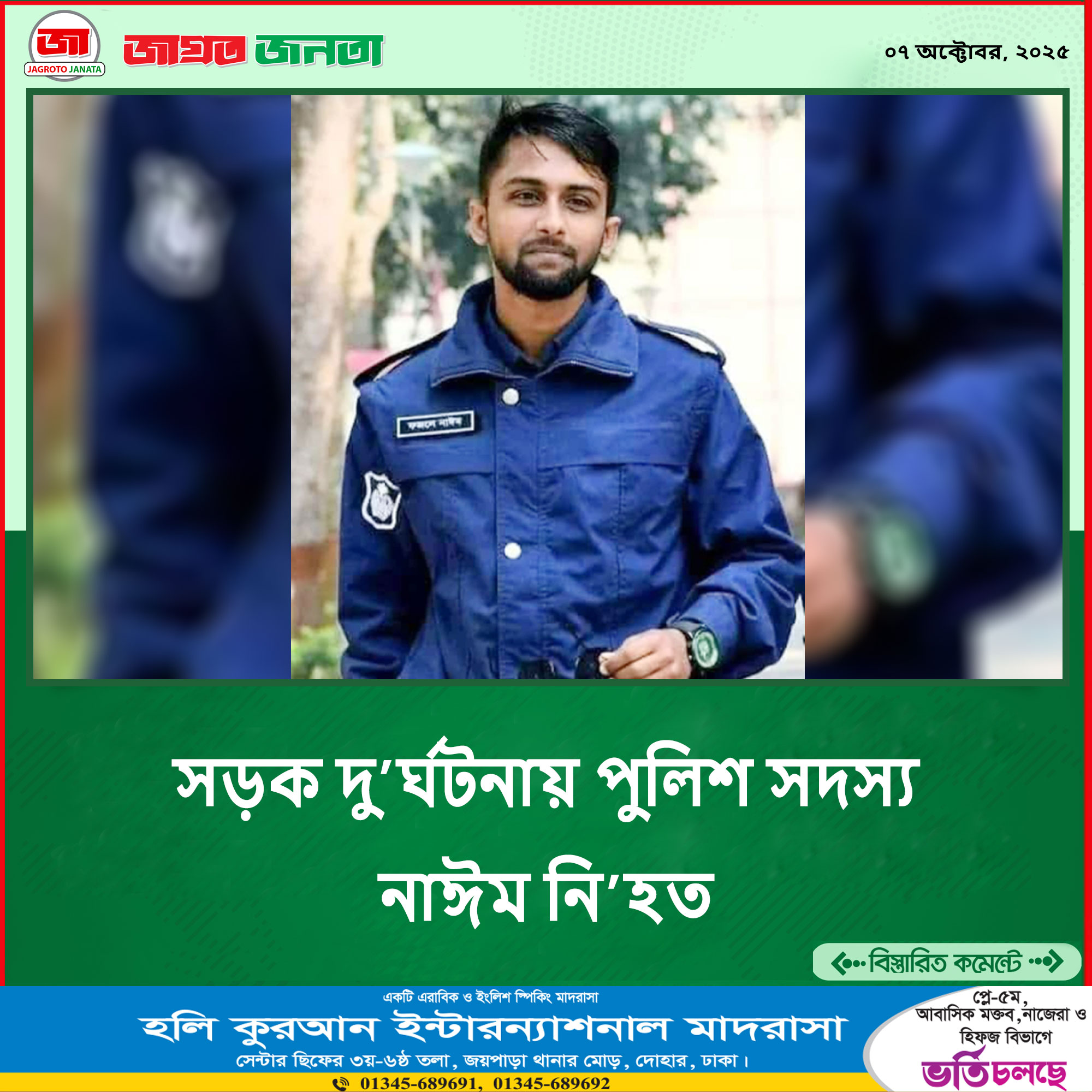 বাইক দুর্ঘটনায় না ফেরার দেশে চলে গেলেন নওগাঁর বদলগাছী উপজেলা বিএনপির সভাপতি ও কেন্দ্রীয় কৃষক দলের যুগ্ম সাধারণ সম্পাদক ফজলে হুদা বাবুলের ভাতিজা পুলিশ সদস্য ফজলে নাঈম জনি (ইন্নালিল্লাহি ওয়া ইন্না ইলাইহি রাজিউন)। সোমবার ভোরে তিনি ইন্তেকাল করেন।